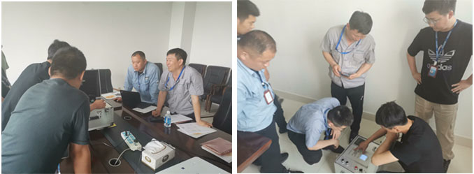 最后雙方技術(shù)人員進行了詳細的交流,在此期間,國高電氣技術(shù)人員還為大家現(xiàn)場演示了最經(jīng)典的黃金搭檔:高壓側(cè)DCM635無擾動切換配合低壓側(cè)DCM621抗晃電模塊的方案,萬達集團技術(shù)人員直觀地感受到解決方案的效果。