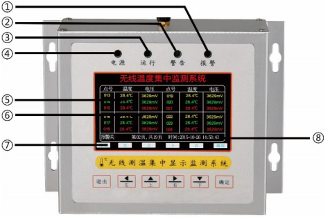 ①報(bào)警指示燈 ②告警指示燈 ③運(yùn)行指示燈 ④電源指示燈