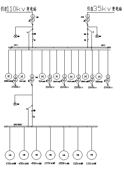 圖中,來自“110KV變電站”簡稱為進(jìn)線一,來自“35KV變電站”簡稱為進(jìn)線二。