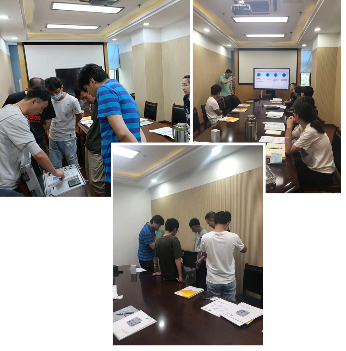 國(guó)高電氣團(tuán)隊(duì)向公司電氣部的技術(shù)人員詳細(xì)的介紹了基于目前新技術(shù)的全面治理方案,從高壓配電側(cè)FSC系列無(wú)擾動(dòng)快切柜到低壓配電側(cè)DCM635電源無(wú)擾動(dòng)快切裝置再到面向各類(lèi)低壓負(fù)載側(cè)的解決方案,比如DCM621抗晃電模塊、MSpower boost低電壓穿越柜和GSS靜態(tài)轉(zhuǎn)換開(kāi)關(guān)、MSpower DVR低電壓穿越裝置等,期間,雙方技術(shù)人員還不時(shí)的針對(duì)一些具體問(wèn)題進(jìn)行了討論。最后,國(guó)高電氣技術(shù)人員為各位中建安裝石化分公司的電氣專(zhuān)家們演示了最經(jīng)典的黃金搭檔:高壓側(cè)DCM635無(wú)擾動(dòng)快切配合低壓側(cè)DCM621抗晃電模塊的組合方案。