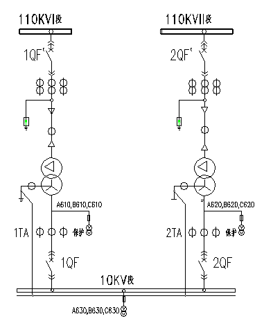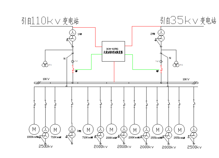圖中,來(lái)自“110KV變電站”簡(jiǎn)稱(chēng)為進(jìn)線(xiàn)一,來(lái)自“35KV變電站”簡(jiǎn)稱(chēng)為進(jìn)線(xiàn)二。