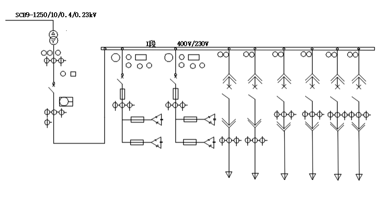 以XX國際學(xué)校為例,0.4kV配電系統(tǒng)為單電源進(jìn)線結(jié)構(gòu),如下圖所示,上級10kV系統(tǒng)降變至0.4kV,一路電源接入,400V 母線帶載所有用電負(fù)荷,因此供電的連續(xù)性和可靠性無法得到有效保證,當(dāng)單一供電線路出現(xiàn)故障時,容易造成敏感負(fù)荷設(shè)備的停機(jī)或跳閘。因此學(xué)校計劃增加1路備用電源,實現(xiàn)雙電源配電系統(tǒng),同時配置GTS雙電源快切系統(tǒng),當(dāng)主電源出現(xiàn)異常時可以在20ms內(nèi)高速切換到備用電源,保證敏感負(fù)載設(shè)備連續(xù)可靠工作,確保全校教學(xué)工作安全穩(wěn)定的開展。
