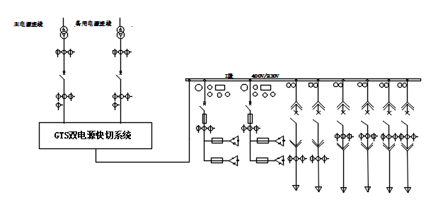 兩路獨(dú)立的400V電源,工作中通過主、備電源的相互投切完成0.4kV配電系統(tǒng)的連續(xù)供電,實現(xiàn)敏感負(fù)荷設(shè)備不停機(jī),無沖擊。