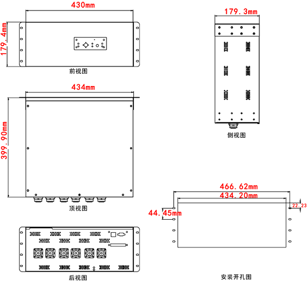 該機型為19英寸標準機箱設(shè)計,可以安裝在機柜的前面板或者內(nèi)部,這取決于機柜固定邊的位置和場所。
