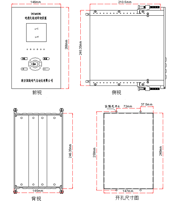 備注:4個安裝定位孔用于固定電源快切裝置,